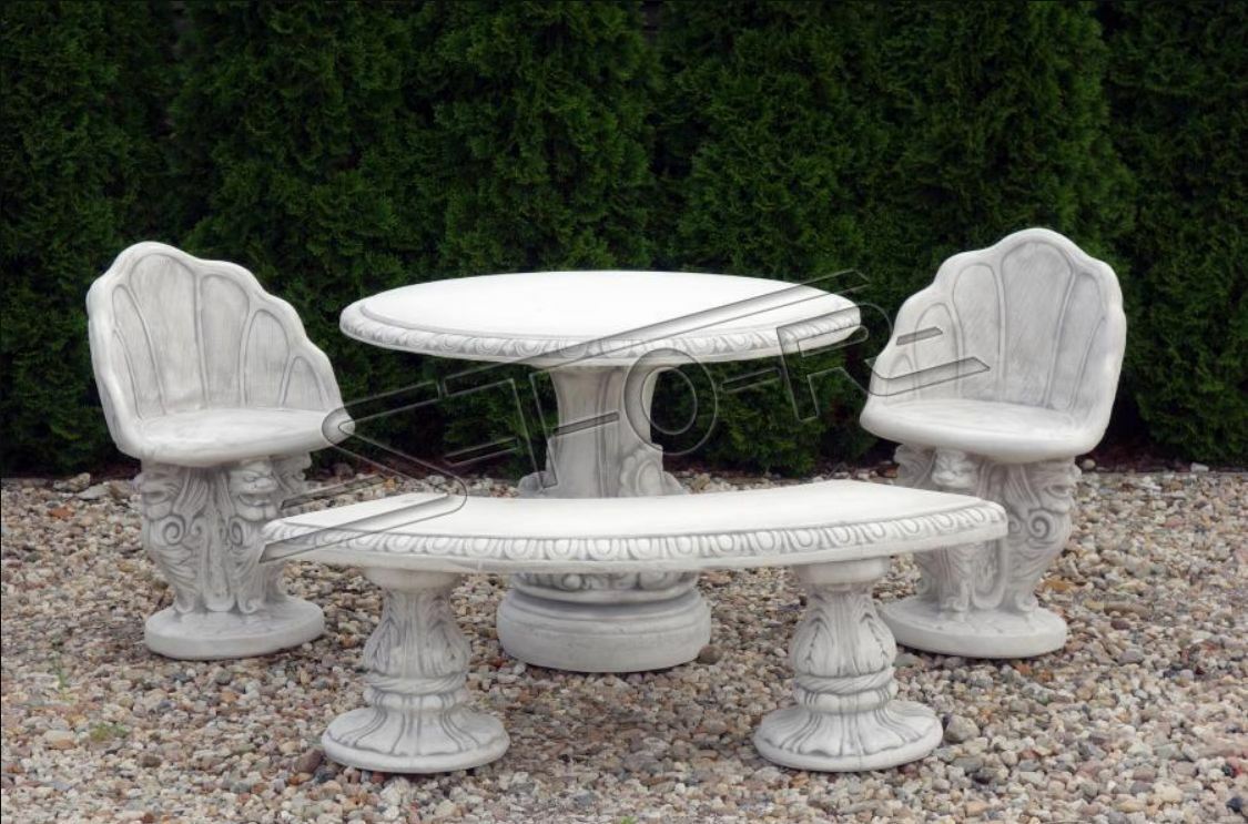 Stein Bank Runde Bänke Garten Terrasen Möbel 135cm Statue