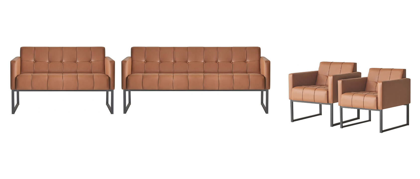 Das Arbeitszimmer-Set bestehend aus einem 3-Sitzer Sofa, einem 2-Sitzer Sofa und zwei Sesseln ist in einem modernen Braunton gehalten und verfügt über graue Edelstahlnocken, die für eine stilvolle Optik sorgen. Die Maße des 3-Sitzers betragen ca. 180 x 71 x 79 cm, während der 2-Sitzer ca. 125 x 71 x 79 cm misst. Die beiden Sessel haben jeweils die Maße ca. 71 x 71 x 79 cm.
