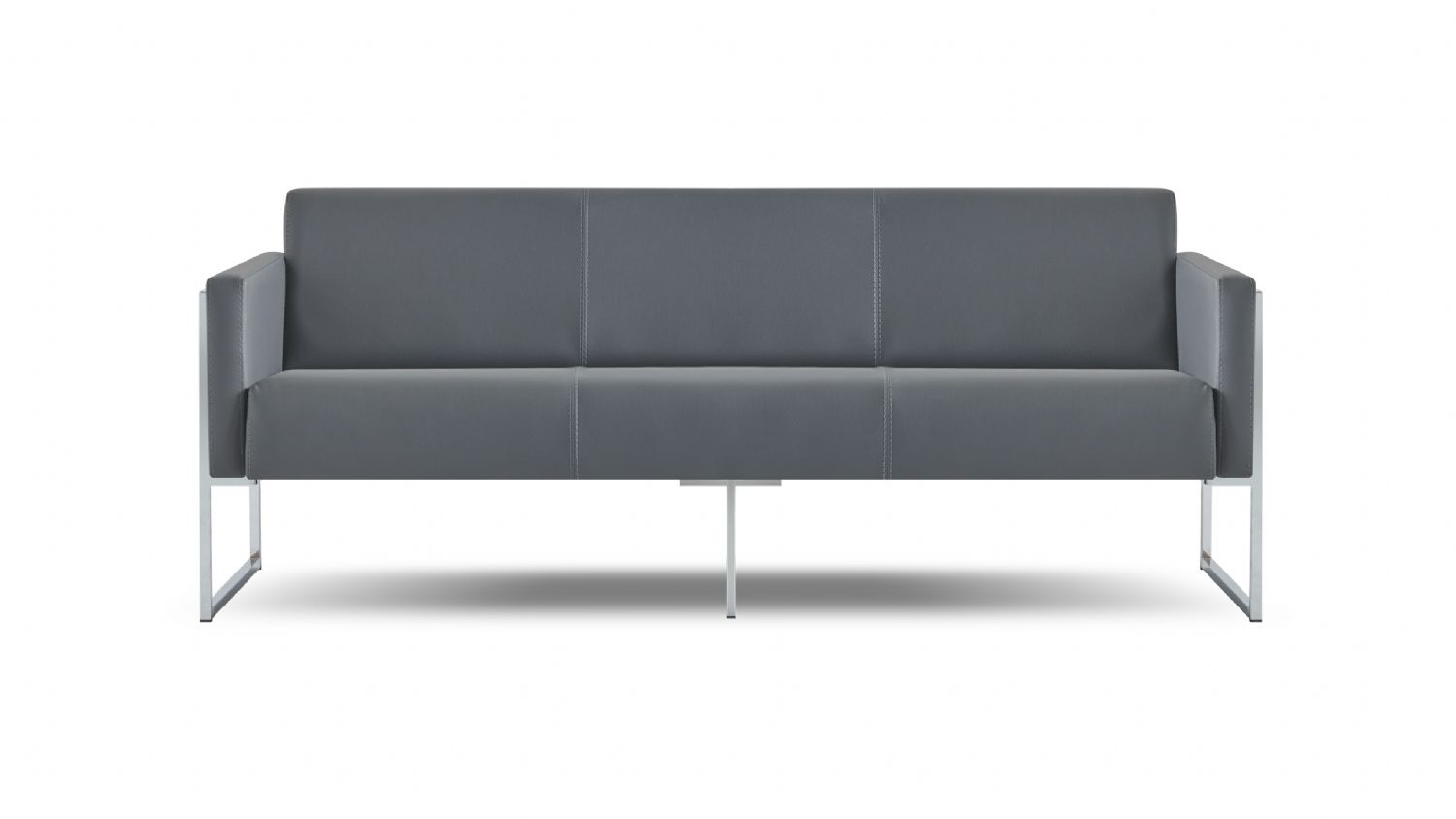 Die grauen 3-Sitzer und 2-Sitzer Sofas sowie die beiden Sessel mit silbernen Beinen aus rostfreiem Stahl sind stilvolle und komfortable Möbelstücke für den Einsatz im Büro. Die Sofas bieten großzügigen Platz für mehrere Personen, während die Sessel jeweils eine gemütliche Einzelsitzgelegenheit bieten. Alle Möbelstücke sind in einem zeitlosen Grauton gehalten und verfügen über silberne Beine aus rostfreiem Stahl, die ihnen Stabilität und eine moderne Optik