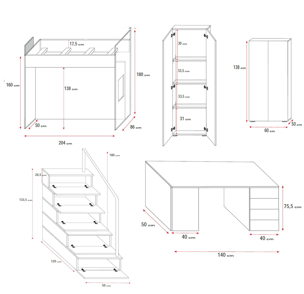 Doppelstockbett Rosa Tisch Schrank Multifunktion Etagen Hochbett Kinderzimmer