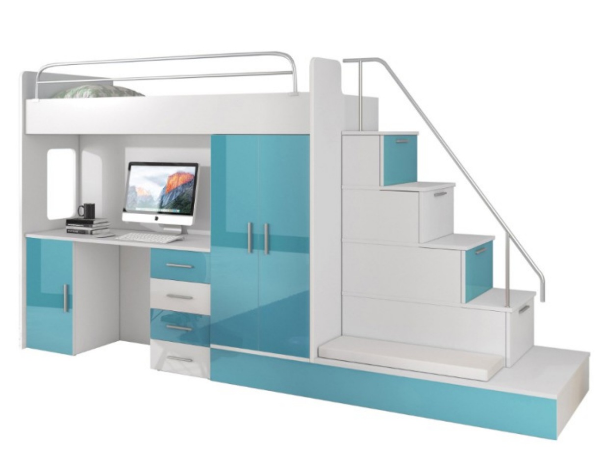 Etagenbett Hochbett Blau Kinderzimmer Betten Hochbetten Etagen Turkis Bett Neu