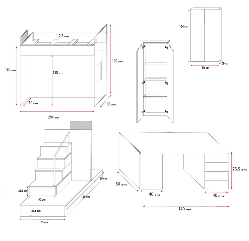 Multifunktions-Hochbett: