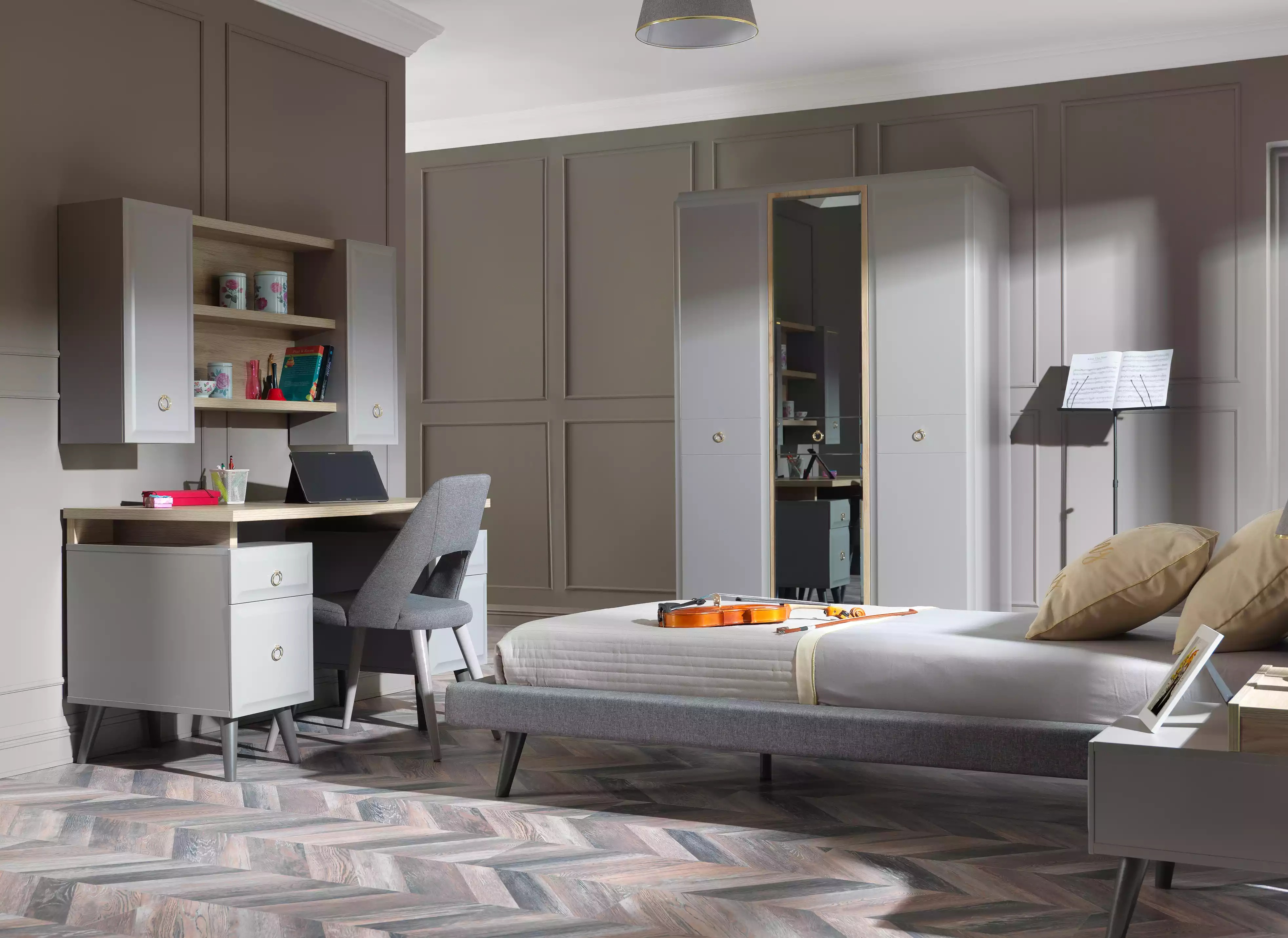 Komplete Jugendbett Kindermöbel Kinderzimmer Bett Holz Grau Set 5tlg