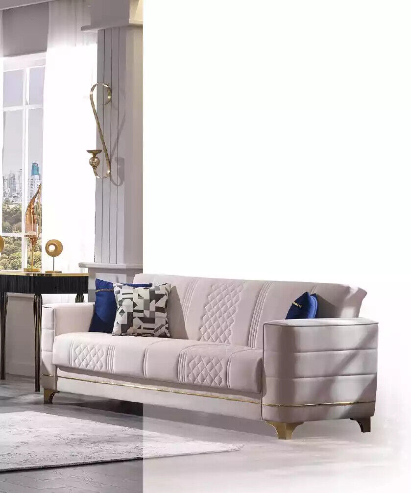 Entdecken Sie den Luxus eines weißen Dreisitzers für Ihr Wohnzimmer! Der hochwertige 3-Sitzer besticht durch sein modernes Design und seinen gemütlichen Komfort. Mit Maßen von ca. 231 x 91 x 87 cm bietet er ausreichend Platz zum Entspannen. Hergestellt aus Holz und Textil, wird dieses elegante Möbelstück in der abgebildeten Farbe geliefert. Lassen Sie sich von unserer großen Auswahl an Farben inspirieren und gestalten Sie Ihre Wohlfühloase ganz nach Ihrem Geschmack. Genießen Sie entspannte Stunden auf Ihrem neuen Luxussofa!