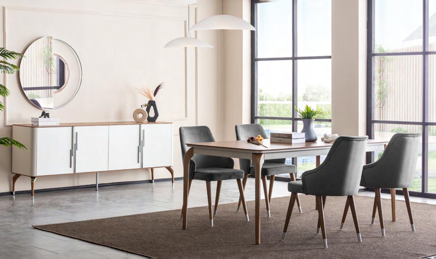 Entdecken Sie unser Komplett Set Esstisch mit 4 Stühlen - die perfekte Esszimmergruppe für Ihr Zuhause! Dieses 5-teilige Esszimmer Set besteht aus einem stilvollen Holztisch mit den Maßen ca. 180 x 95 x 76 cm und vier passenden Stühlen (ca. 68 x 65 x 88 cm). Hergestellt aus hochwertigem Holz in einer schönen Farbe, wie abgebildet, verleiht dieses Set Ihrem Esszimmer eine moderne Note. Holen Sie sich jetzt dieses Esszimmermöbel Set von XL Moebel und machen Sie Ihr Esszimmer zu einem Ort des Stils und Komforts!