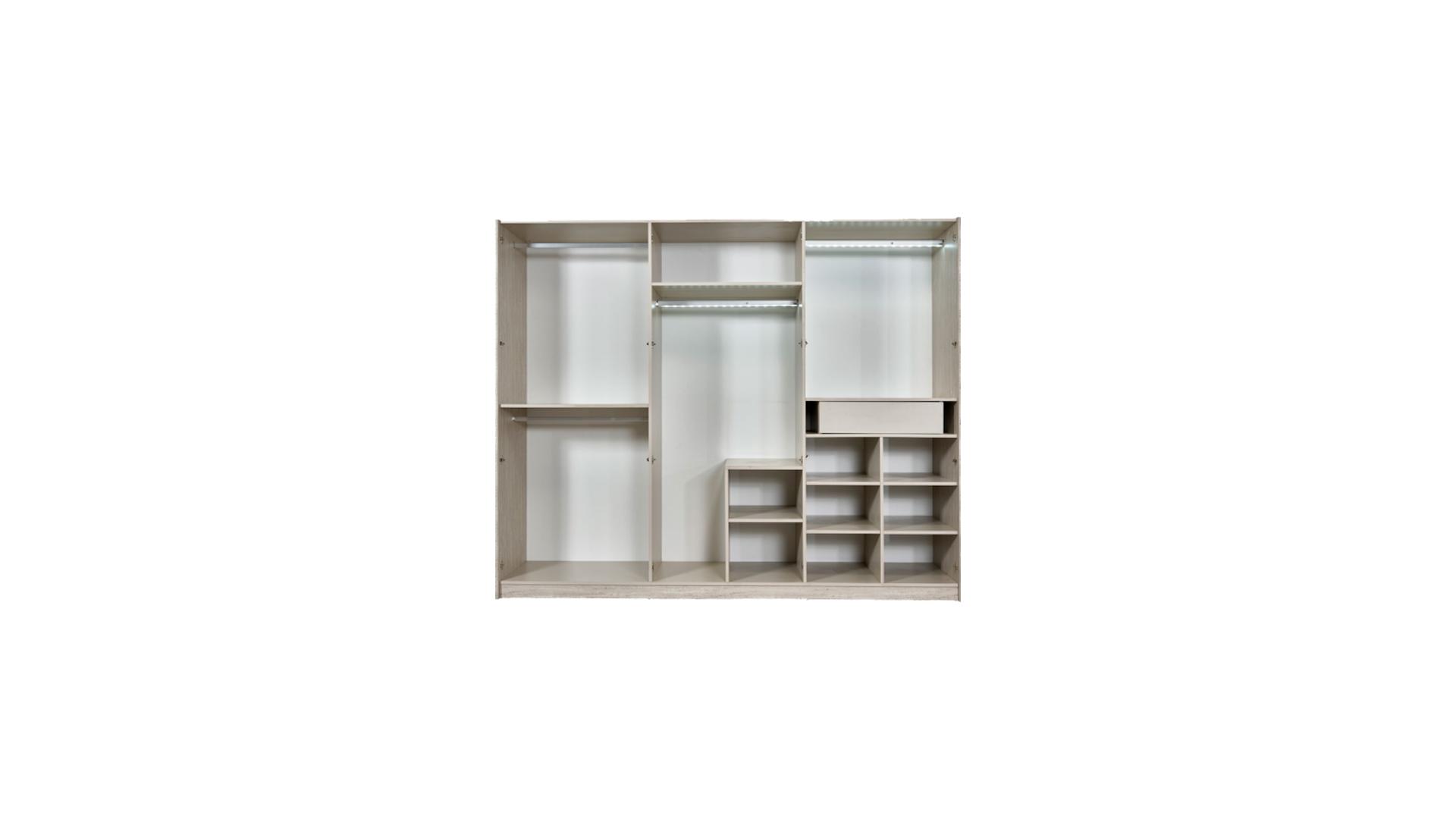 Der beiger Schlafzimmer Kleiderschrank aus Holz ist ein elegantes und geräumiges Möbelstück, das sich perfekt in jedes Schlafzimmer einfügt. Mit einer imposanten Länge von ca. 260 cm bietet dieser Designer Holzschrank großzügigen Stauraum für Ihre Kleidung und Accessoires. Die hochwertige Verarbeitung und das zeitlose Design machen diesen Kleiderschrank zu einem echten Blickfang in Ihrem Zuhause.