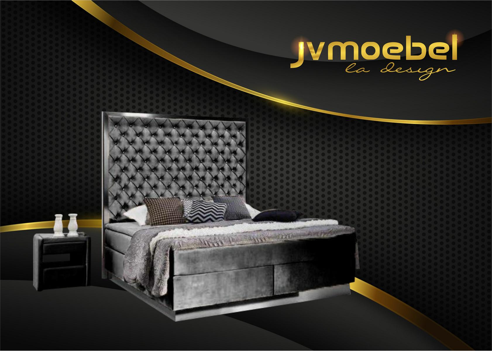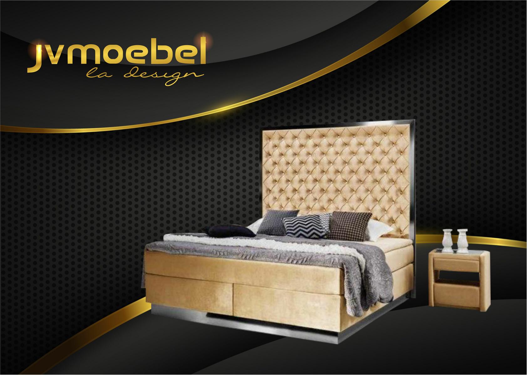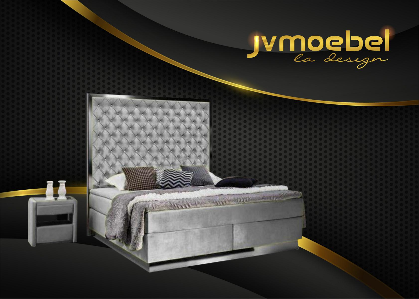 Boxspring Bett Schlafzimmer Set 3tlg Textil Bett 2x Nachttisch Design Betten Neu