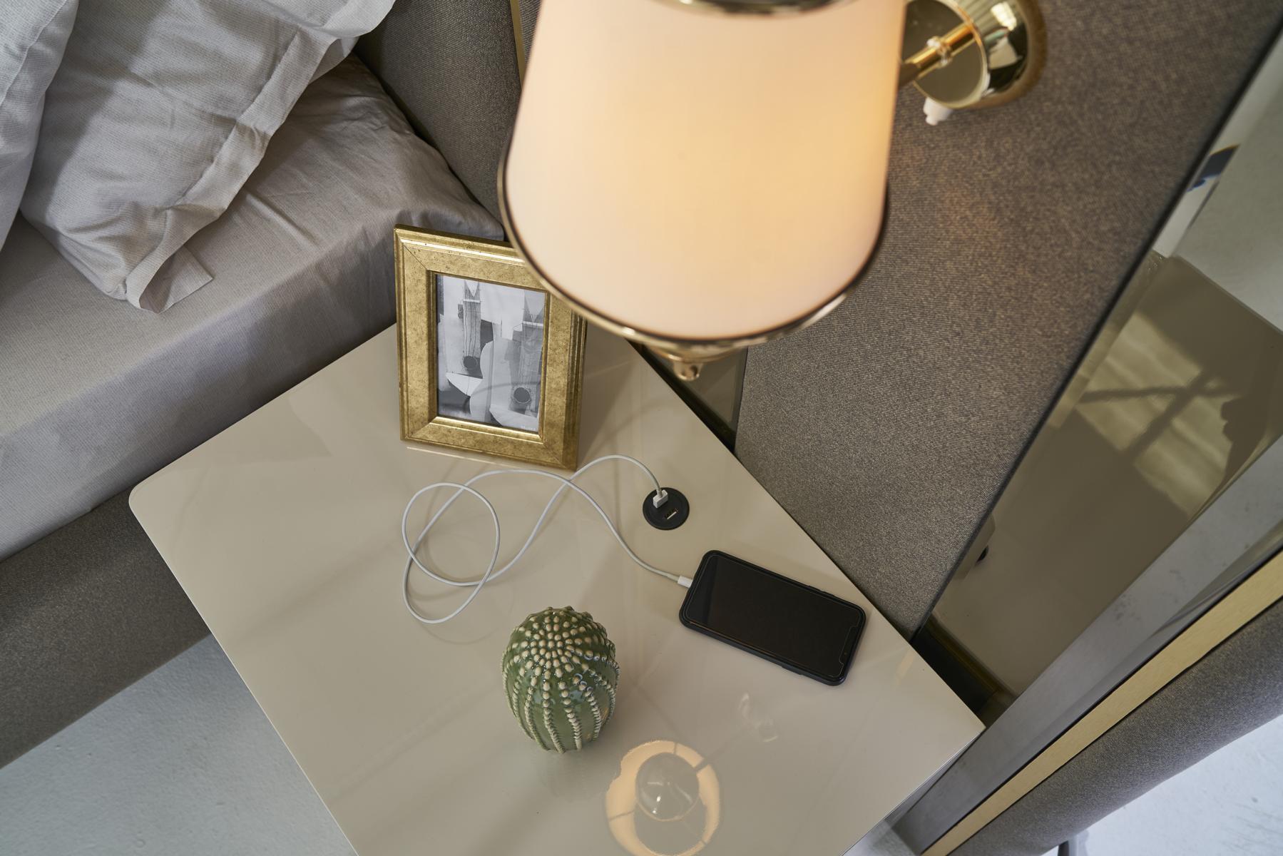 Ein Wandpaneel über den Nachttischen ist gegen einen Aufpreis erhältlich