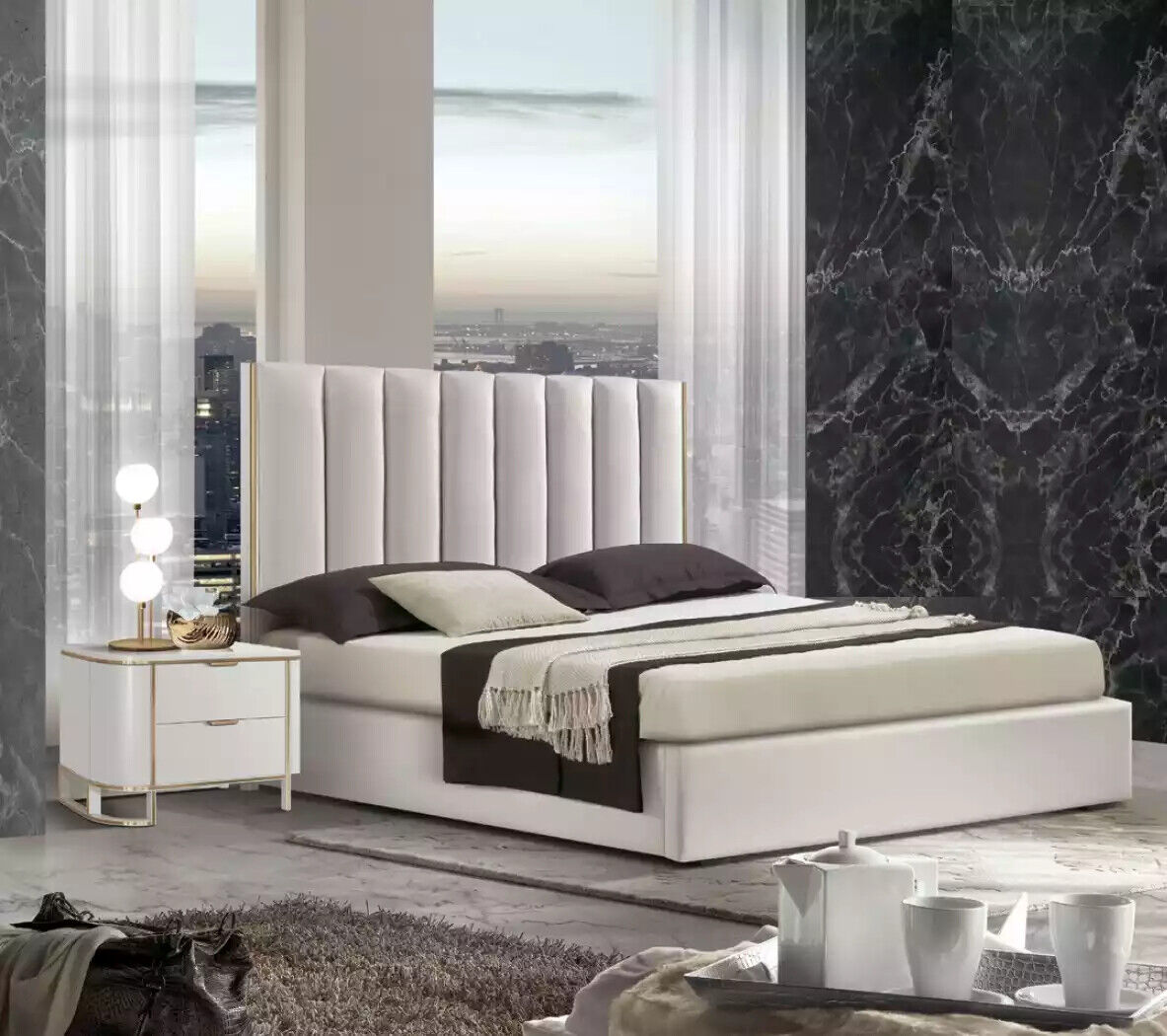 Schlafzimmer Set Luxus Bett 2x Nachttische Design neu weiß 3tlg Modern