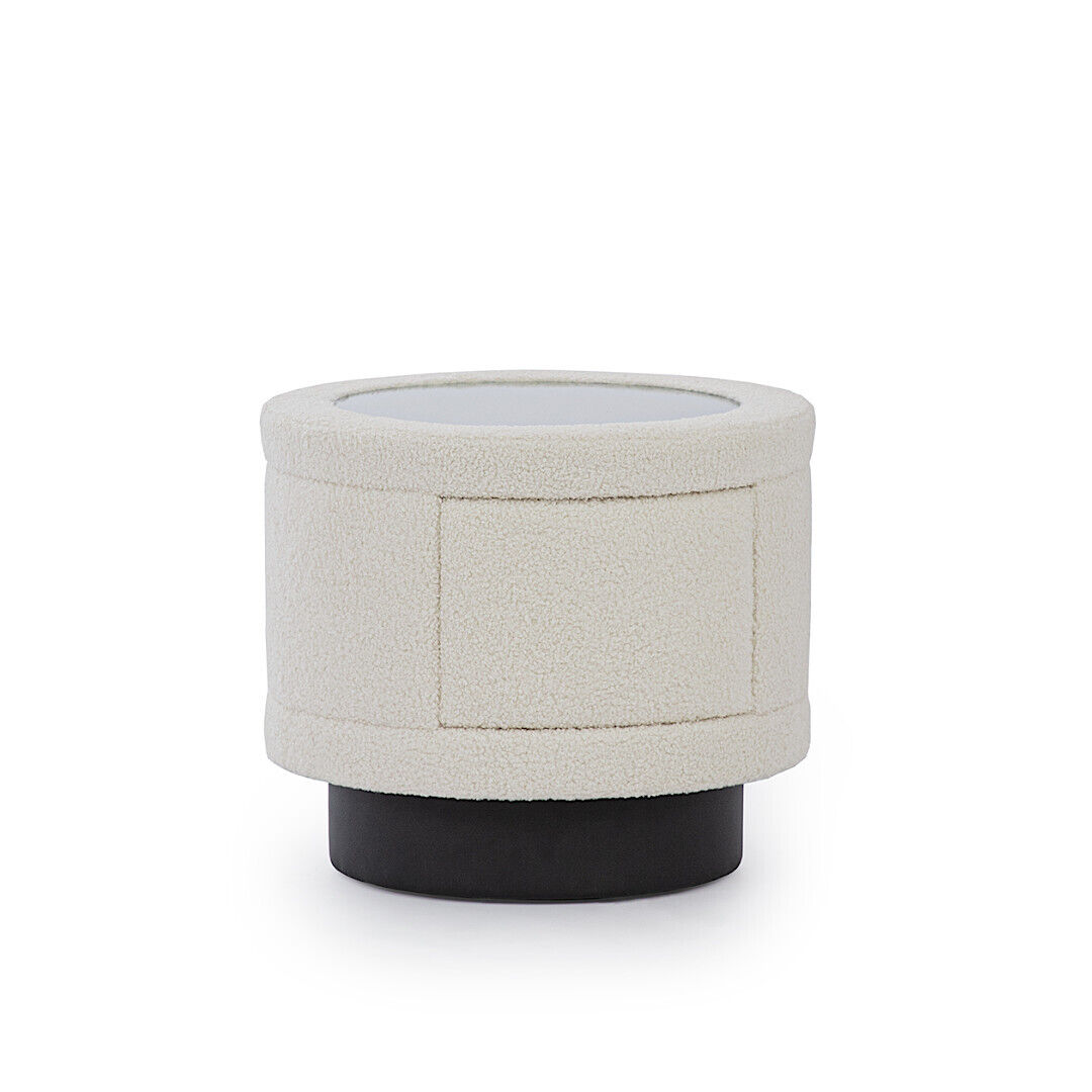 Entspannen Sie stilvoll in Ihrem Schlafzimmer mit unserem weißen Nachttisch aus Holzgestell und Designer Glasplatte. Dieses elegante Möbelstück von XL Moebel vereint Funktionalität mit modernem Design. Der Nachttisch hat die Maße von ca. 48 x 48 x 52 cm und bietet genügend Platz für Ihre Nachttischlampe, Bücher oder andere Gegenstände. Er ist in der abgebildeten Farbe erhältlich, aber auch andere Stoffe und Farben sind möglich. Sie haben die Wahl aus verschiedenen Materialoptionen (Preis abhängig von der Gruppe), darunter ein angenehm weicher Textilstoff aus Baumwolle und Polyester. Das Innengestell besteht aus echtem Holz und sorgt für Stabilität und Langlebigkeit. Gestalten Sie Ihr Schlafzimmer ganz nach Ihren Wünschen und wählen Sie den passenden Nachttisch für Ihr Zuhause. Bestellen Sie jetzt und verleihen Sie Ihrem Schlafzimmer eine stilvolle Note!