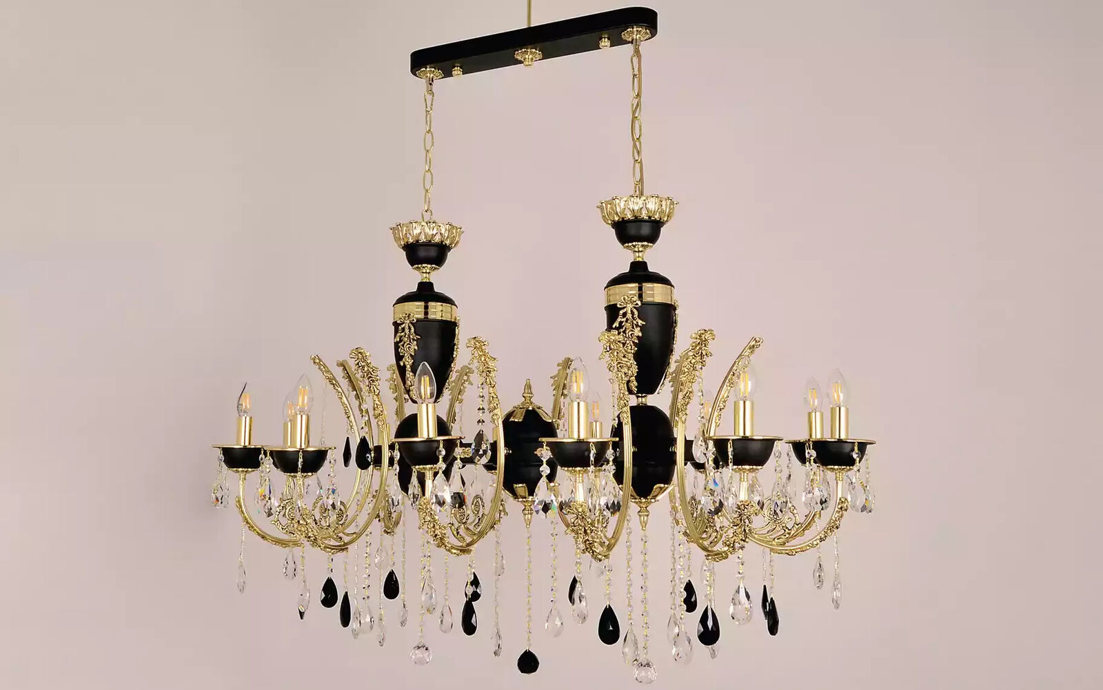 Deckenleuchte Luxus Kronleuchter Deckenlampe Luster Kristall Schwarz Lampe
