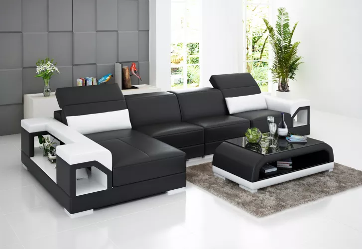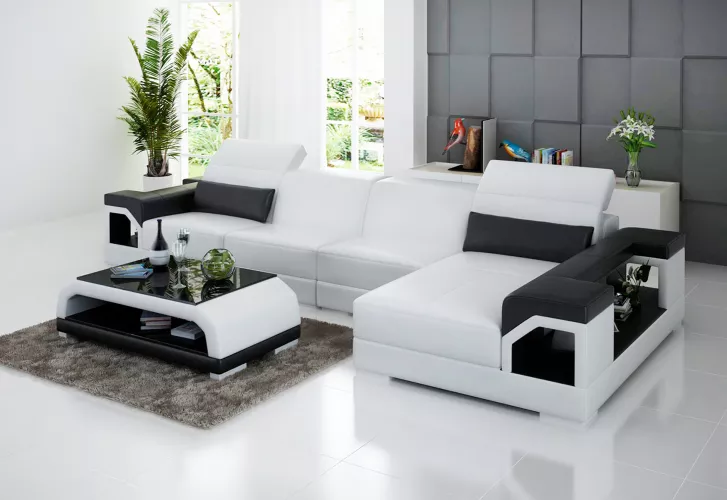 Verschönern Sie Ihr Wohnzimmer mit unserer Design Eckcouch Ledergarnitur! Diese stylische L-Form Couch bietet nicht nur Komfort, sondern auch Eleganz in Ihrem Zuhause. Hergestellt aus Premium Lederfaserstoff (70% Leder / 30% Polyester) ist dieses Sofa in verschiedenen Farben erhältlich, von klassisch Schwarz und Weiß bis hin zu exquisitem Gold und Silber. Mit optionalem Premium Echtleder, Textilstoff oder Vollleder für ein Upgrade, können Sie das Sofa nach Ihrem Geschmack anpassen. Das Innengestell aus echtem Holz mit Federkern sorgt für Stabilität und Langlebigkeit. Mit Maßen von ca. 370 x 182 cm oder 182 x 370 cm (Länge x Breite) und einer angenehmen Sitzhöhe von ca. 42 cm bietet diese Ledercouch ausreichend Platz für gemütliche Abende und gesellige Runden. Holen Sie sich jetzt Ihre Design Couchen Eckcouch und verleihen Sie Ihrem Wohnzimmer einen Hauch von Luxus!