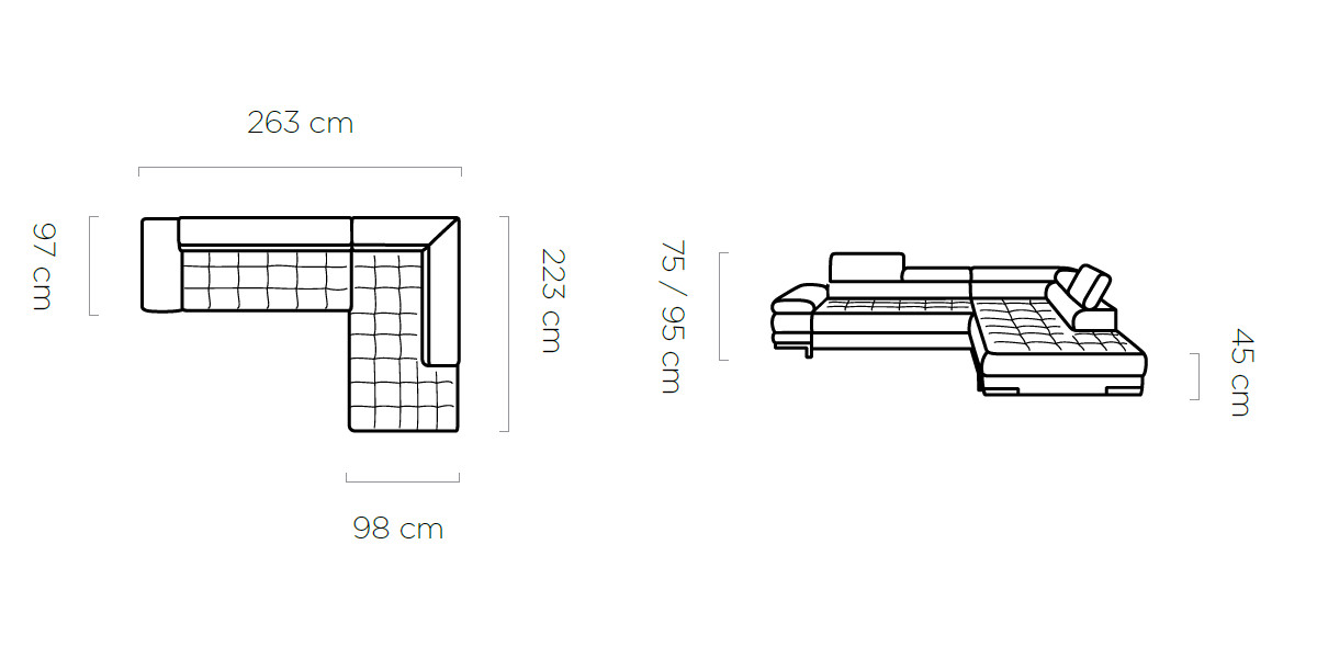 263 x 223 x 75/95 cm