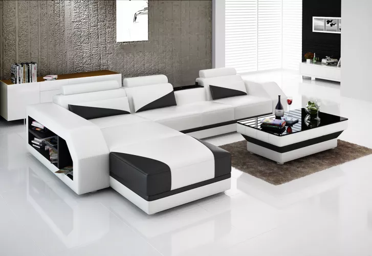 Erleben Sie pure Eleganz und Komfort mit unserem Design Sofa Ecksofa Sofas Couch Polster Eckgarnitur! Hergestellt aus hochwertigem Premium Lederfaserstoff (70% Leder / 30% Polyester) bietet dieses Ecksofa in L-Form Ihnen nicht nur eine gemütliche Sitzgelegenheit, sondern auch ein stilvolles Designelement für Ihr Zuhause. Mit Maßen von ca. 215 x 310 cm oder 310 x 215 cm, einer Sitzhöhe von ca. 42 cm und einer angenehmen Sitztiefe von ca. 58 cm, steht dieses Sofa für Entspannung pur. Der Couchtisch mit den Maßen ca. 120 x 70 x 40 cm rundet das Set perfekt ab. Wählen Sie aus einer Vielzahl von Farben wie Zyan, Weinrot, Schwarz und vielen mehr, um das Ecksofa an Ihren persönlichen Stil anzupassen. Zudem haben Sie die Möglichkeit, zwischen verschiedenen Materialoptionen wie Premium Echtleder, Textilstoff oder Vollleder zu wählen. Genießen Sie das italienische Rindsleder und das Innengestell aus echtem Holz, welches für Stabilität und Langlebigkeit sorgt. Gönnen Sie sich den Luxus von Federkernpolsterung und der exquisiten Verarbeitung, die dieses Ecksofa zum Highlight in Ihrem Wohnzimmer macht. Erfüllen Sie sich den Traum von einem Ecksofa, das nicht nur schön anzusehen ist, sondern auch höchsten Sitzkomfort bietet.