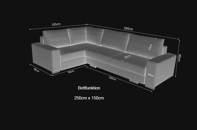Bettfunktion: ca. 250 x 150 cm Liegefläche (im Preis enthalten)