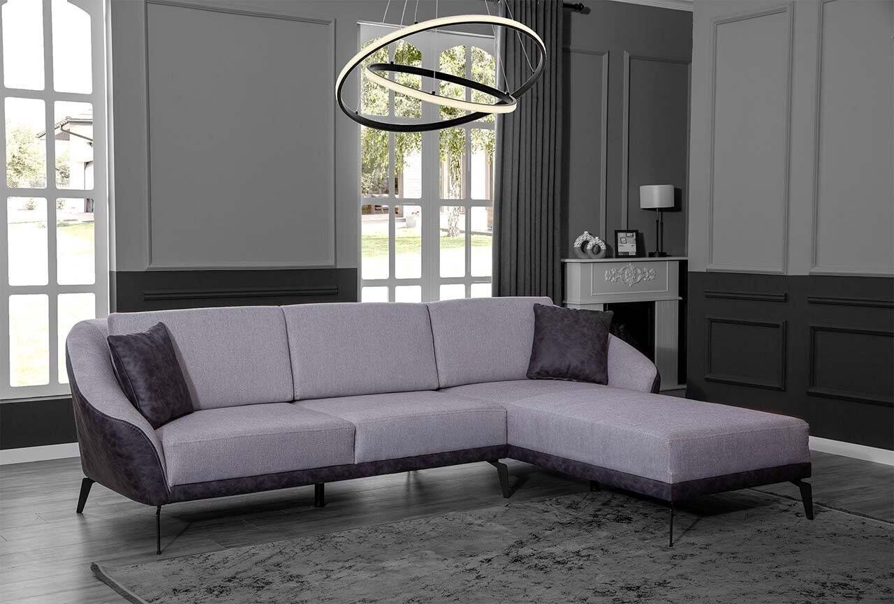 Weiß-Graues L-Form Wohnzimmer Stoffsofa Designer Ecksofa Textil Möbel