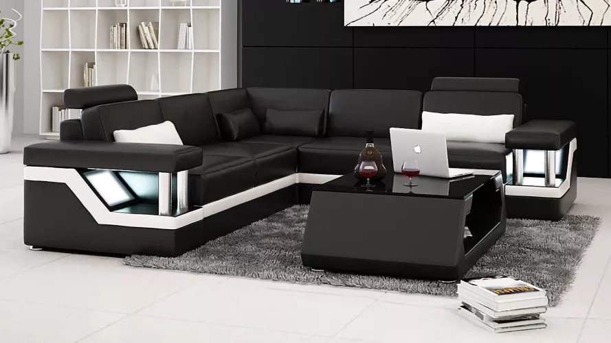 Wohnlandschaft Sofa Garnitur Eckgarnitur Ledersofa Polster Polster Couch