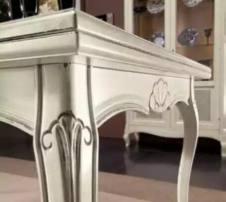 Entdecken Sie die exklusive 5-teilige Essgruppe von Giuliacasa aus Italien! Diese stilvolle Garnitur beinhaltet einen Esstisch und 4 Stühle in strahlendem Weiß, perfekt für jede moderne Küche oder Esszimmer. Handgefertigt aus hochwertigem Holz, besticht dieser Tisch durch seine Maße von ca. 100 x 100 x 77 cm und kann auf bis zu 200 x 100 x 77 cm ausgezogen werden. Die passenden Stühle mit den Maßen ca. 43 x 47 x 100,5 cm sind nicht nur bequem, sondern auch ein echter Blickfang. Gönnen Sie sich italienischen Luxus für Ihr Zuhause mit dieser eleganten Essgruppe von Giuliacasa!