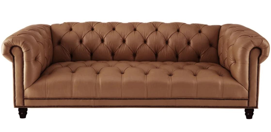 Beige Dreisitzer Leder Chesterfield Wohnzimmer Modern Design Couchen Sofa Neu