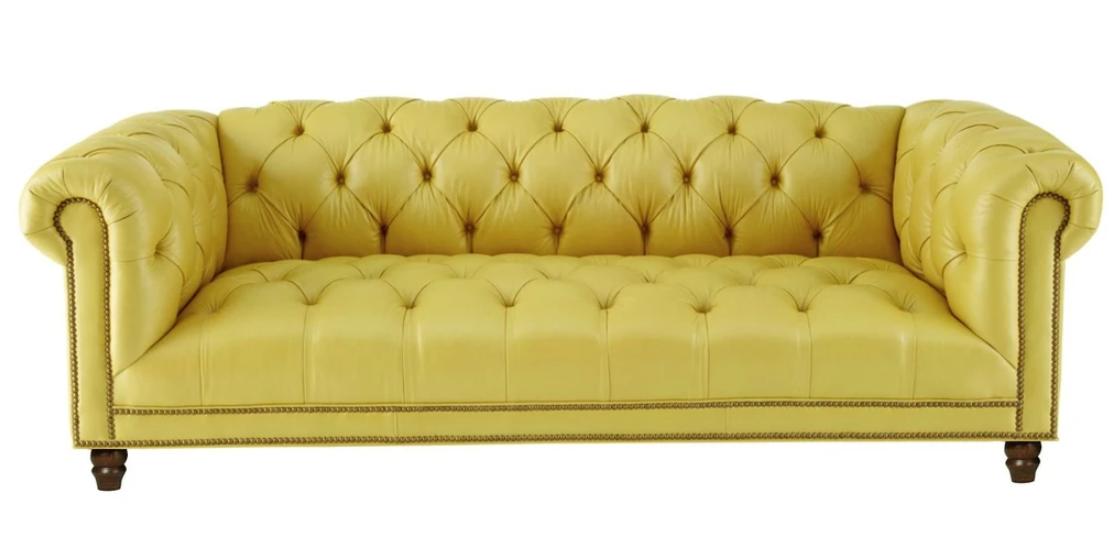 Das Beige Dreisitzer Leder Chesterfield Wohnzimmer Modern Design Couchen Sofa Neu ist ein elegantes und zeitgemäßes Möbelstück, das Ihrem Wohnzimmer einen Hauch von Luxus verleiht. Mit den Maßen ca. 230 x 90 x 80 cm bietet dieses Sofa genügend Platz für entspannte Abende allein oder mit Ihren Liebsten. Die Sitzhöhe von ca. 42 cm und die Sitztiefe von ca. 55 cm sorgen für optimalen Komfort. Das hochwertige italienische Rindsleder in Beige verleiht dem Sofa eine edle Optik und Langlebigkeit. Das Innengestell aus echtem Holz und der Federkern sorgen für Stabilität und Gemütlichkeit.