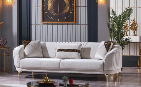 Weißer Edelstahl Dreisitzer Wohnzimmermöbel Polstersofas Luxus Möbel Sofa Samt