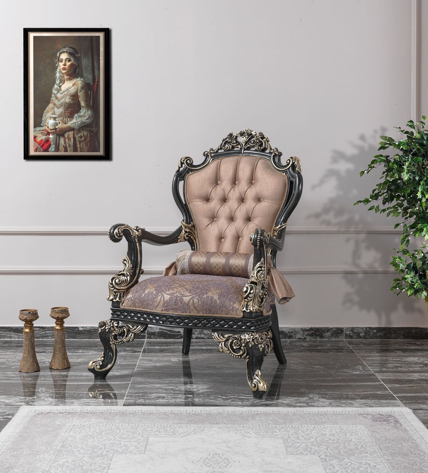 Sessel Beige Ohrensessel Barock Sitzer Stoff Polyester Wohnzimmer