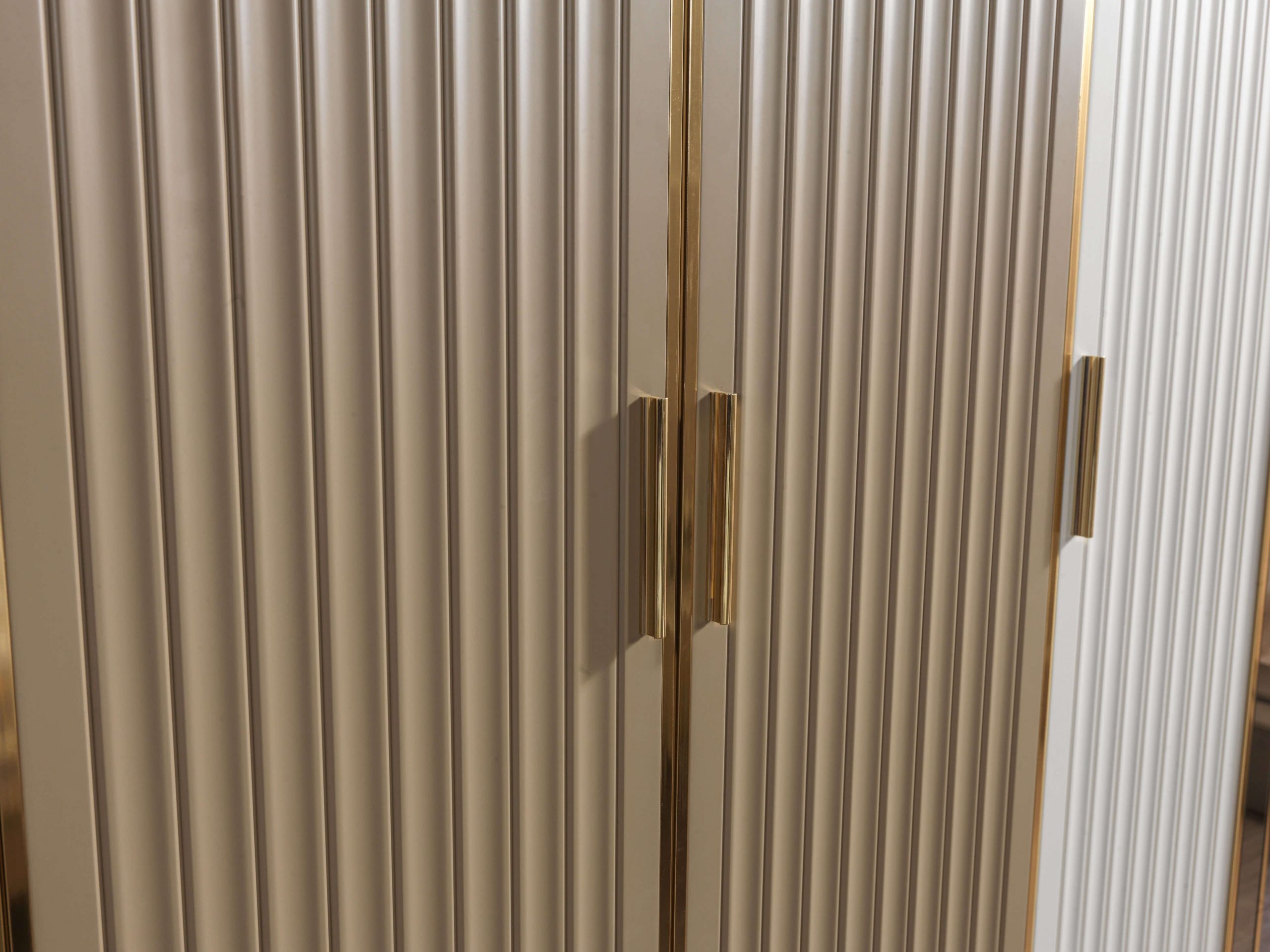 Η μοντέρνα και πολυτελής γυάλινη ντουλάπα, διαστάσεων 243 x 64 x 217 εκ., αναδεικνύει την τέχνη της κομψότητας και της λειτουργικότητας. Σε αποχρώσεις μπεζ και λευκού, το σχεδιαστικό της ύφος ενσωματώνει την απλότητα με την πολυτέλεια, δημιουργώντας μια αίσθηση ηρεμίας και αρμονίας στο χώρο σας. Κατασκευασμένη με προσοχή στη λεπτομέρεια, αυτή η ντουλάπα προσφέρει άφθονο αποθηκευτικό χώρο, ενώ οι γυάλινες επιφάνειές της προσδίδουν διάσταση και φωτεινότητα. Ιδανική για εκείνους που επιθυμούν να αναβαθμίσουν την αισθητική του σπιτιού τους, είναι η απόλυτη επιλογή για μια ζωή γεμάτη αποκλειστικότητα και στυλ.