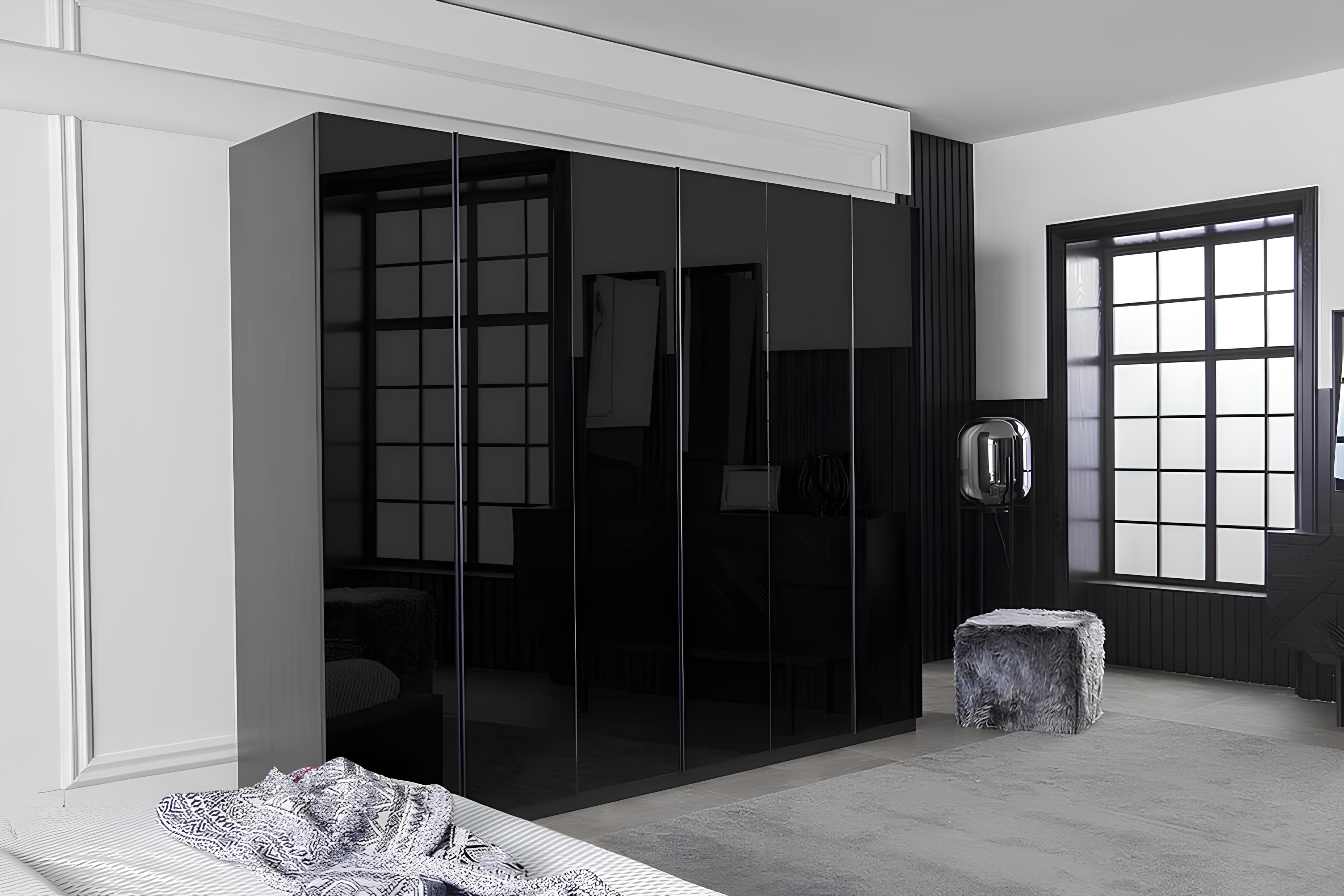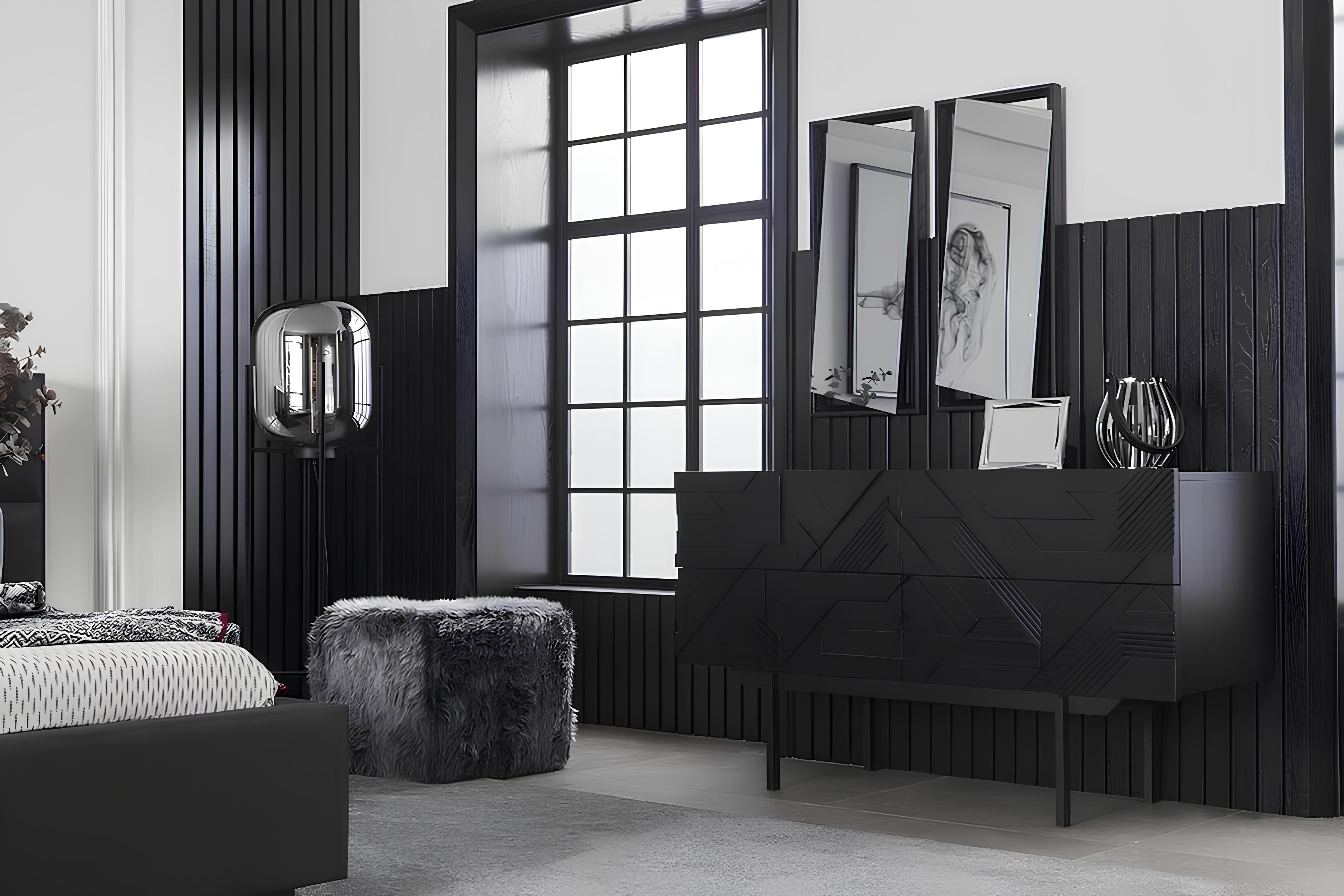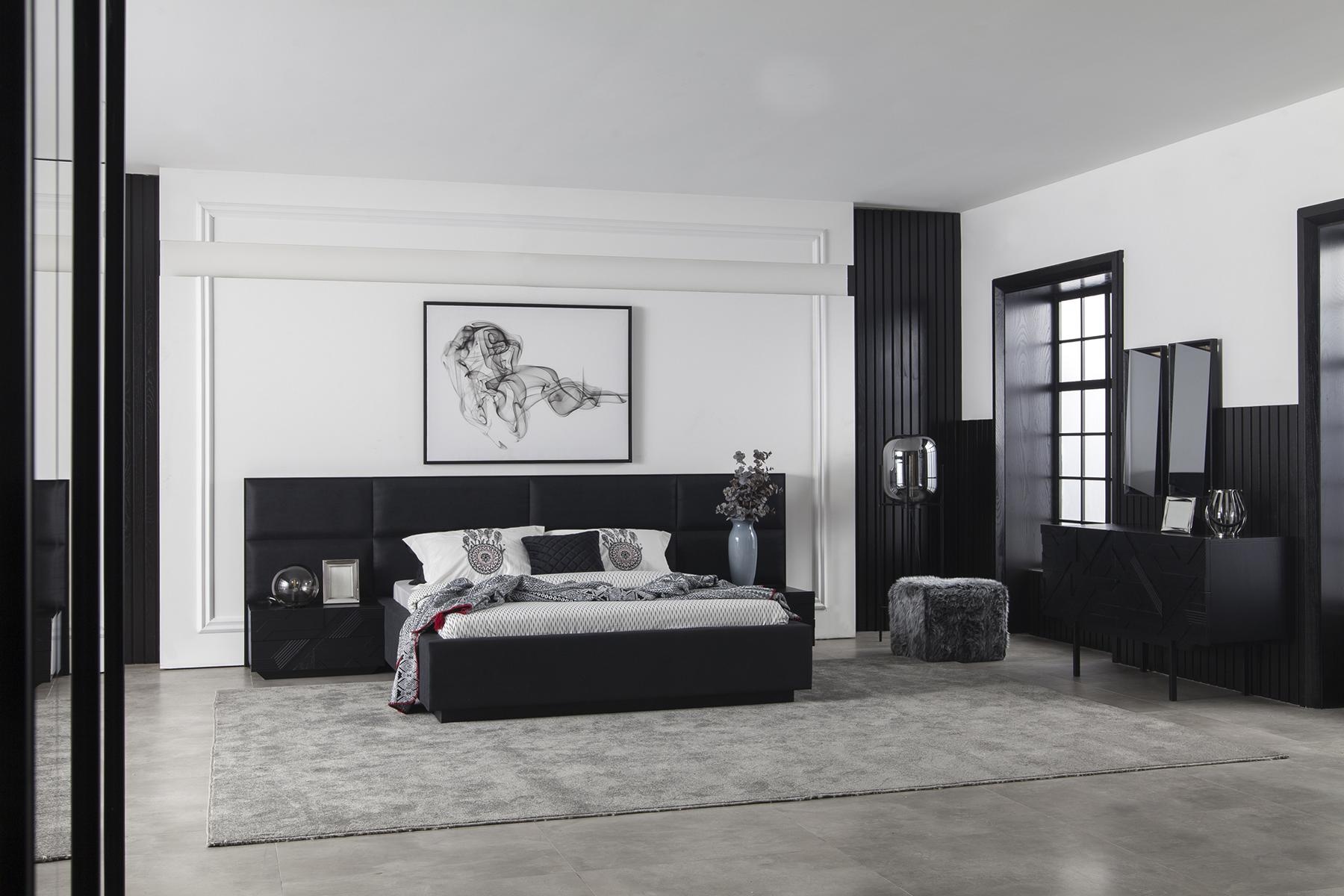 Σύνολο μαύρων επίπλων κρεβατοκάμαρας 4 τεμαχίων, πολυτελές σύνολο με νέο αποθηκευτικό χώρο | xlhome.gr