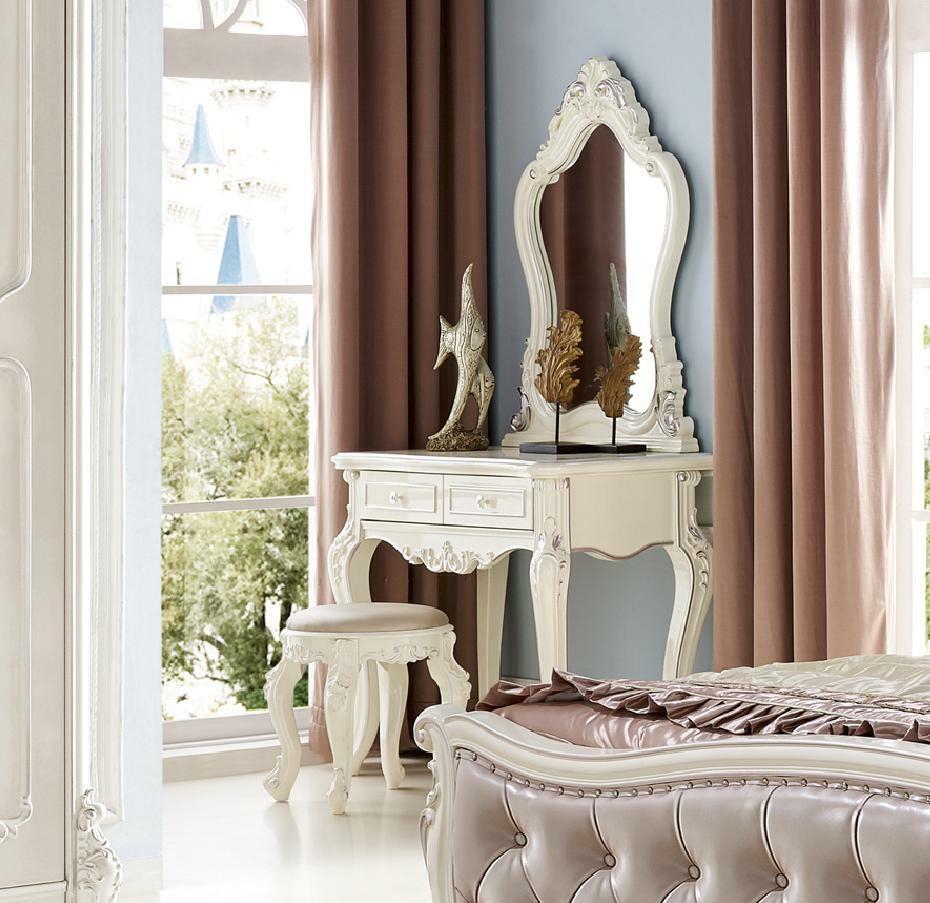 Bett Nachttisch Schminktisch Schlafzimmer Hocker Set 6 tlg. Massivholz