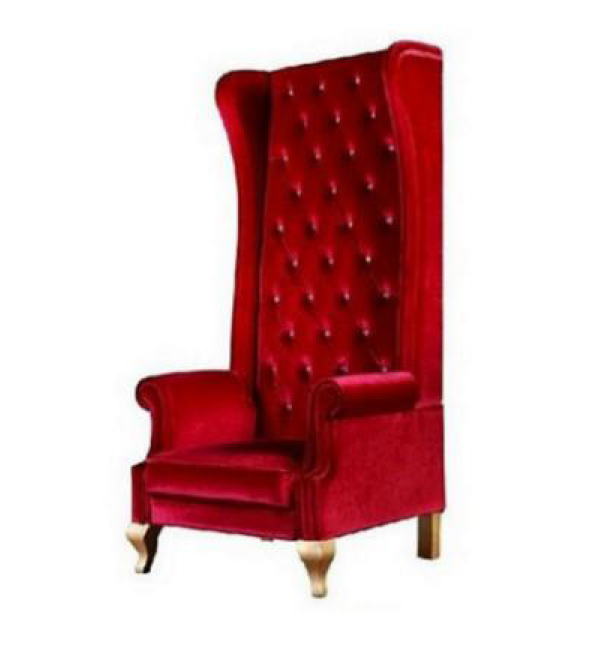 Voltaire-Sessel im englischen Stil, Voltaire-Sessel mit hoher Rückenlehne, Voltaire-Sessel in rotem Farbton