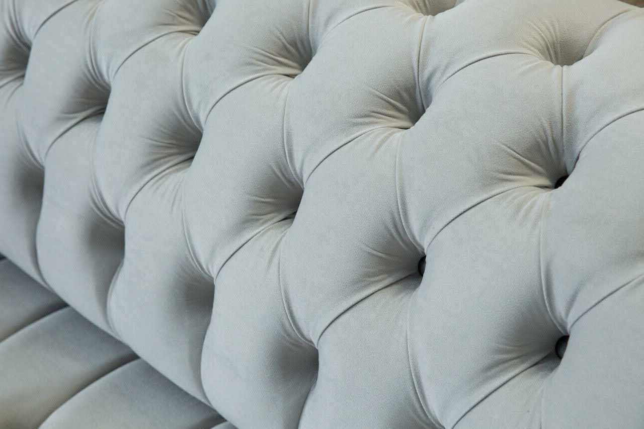 Entspannen Sie in Luxus mit unserem 3-Sitzer Chesterfield Ledersofa! Dieses exklusive Designerstück ist der perfekte Mix aus Eleganz und Komfort. Mit Maßen von ca. 230 x 80 x 90 cm bietet dieses Sofa genügend Platz für gemütliche Abende allein oder mit Ihren Liebsten. Das hochwertige Sofa ist in einer Vielzahl von Farben erhältlich, darunter klassische Grautöne, zarte Pastellfarben und lebendige Gelb- und Grüntöne. Wählen Sie aus Premium Kunstleder, Echtleder, samtigem Stoff oder dem innovativen Flecken abweisenden Magic Home Stoff, um Ihren persönlichen Stil zu unterstreichen. Dank des Federkerns und des echten Holz-Innengestells ist dieses Sofa nicht nur optisch ansprechend, sondern auch äußerst bequem und langlebig. Für eine zusätzliche glamouröse Note können Sie optional Kristallsteine oder sogar echte Swarovski Kristallsteine hinzufügen. Gestalten Sie Ihr Wohnzimmer mit diesem Luxus Chesterfield Ledersofa und genießen Sie pure Eleganz und Komfort auf höchstem Niveau. Gönnen Sie sich dieses Traumsofa und machen Sie Ihre Wohnzimmer-Träume wahr!