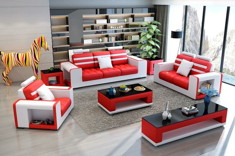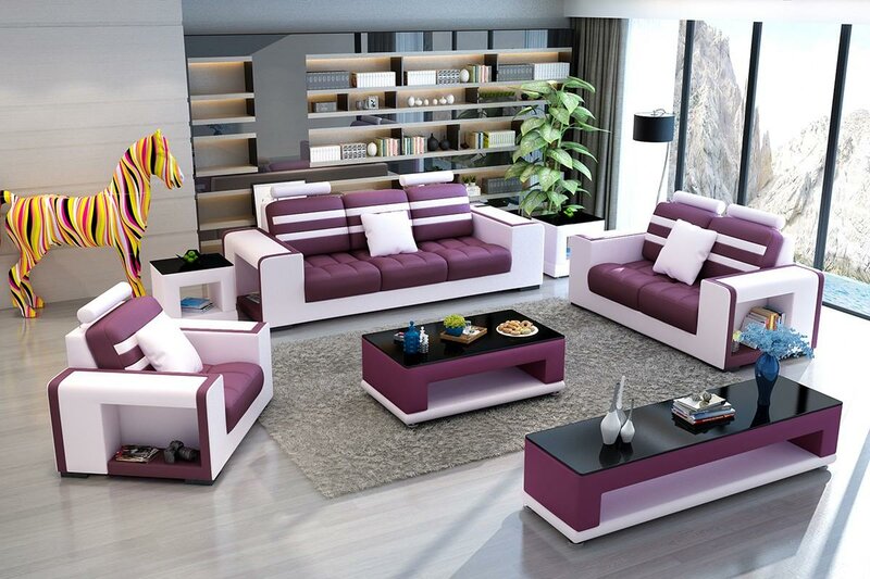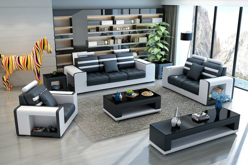 Luxus Sofagarnitur 3+2+1 Sitzer Wohnlandschaft Sofa Couch Polster Garnitur Sofas Leder