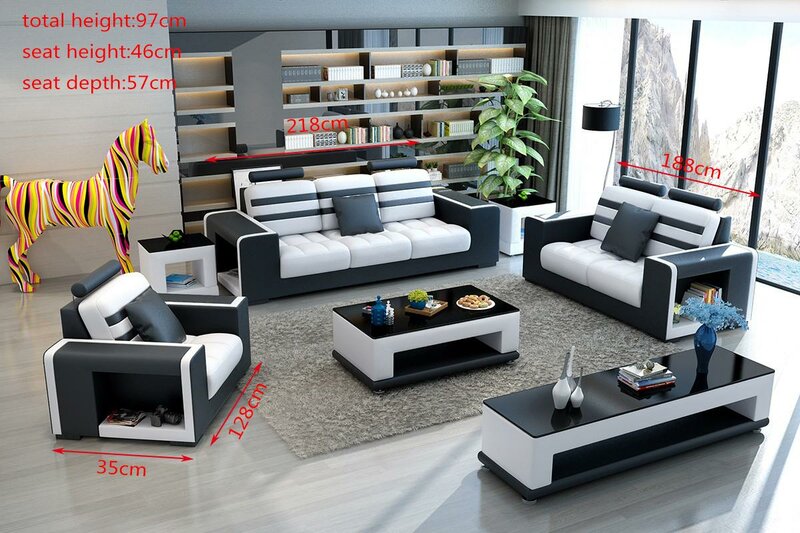 Entdecken Sie luxuriösen Komfort mit unserer exklusiven Luxus-Sofagarnitur 3+2+1 Sitzer Wohnlandschaft! Hergestellt aus hochwertigem Premium Lederfaserstoff (70% Leder / 30% Polyester) bietet dieses elegante Sofa die perfekte Kombination aus Stil und Langlebigkeit. Mit Maßen von 218 * 95 * 97 cm für den 3-Sitzer, 188 * 95 * 97 cm für den 2-Sitzer und 128 * 95 * 97 cm für den Sessel, bietet diese Wohnlandschaft großzügigen Platz für Ihre Familie und Gäste. Machen Sie Ihr Wohnzimmer zum Mittelpunkt Ihres Zuhauses und entspannen Sie in stilvoller Eleganz. Wählen Sie aus einer Vielzahl von Farboptionen, darunter Ocker, Marineblau, Schokolade und viele mehr, um die Garnitur an Ihren individuellen Stil anzupassen. Optional bieten wir verschiedene Materialoptionen wie Premium Echtleder oder Premium Textilstoff gegen Aufpreis an. Erleben Sie zeitlose Eleganz und höchsten Komfort mit unserer Luxus-Sofagarnitur. Bestellen Sie noch heute und verwandeln Sie Ihr Wohnzimmer in eine moderne Wohlfühloase!