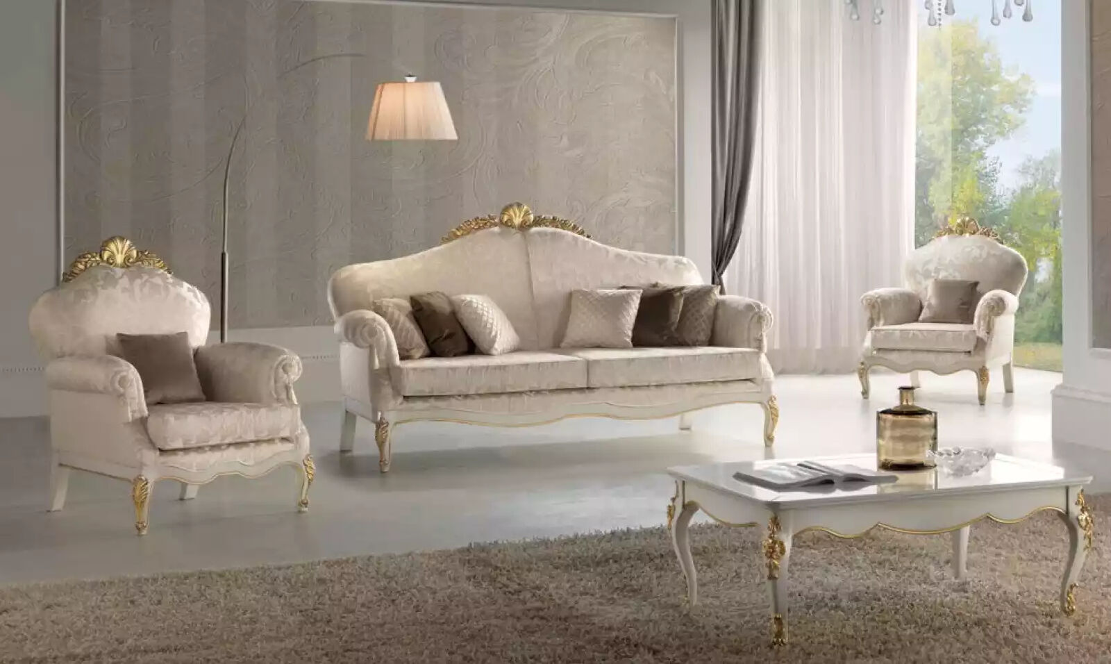 Entdecken Sie das Komplettset 4-teilige Wohnzimmer-Sofagarnitur von Giuliacasa aus Italien! Diese traumhafte Sofakombination besteht aus einem geräumigen 3-Sitzer-Sofa, zwei eleganten Sesseln und einem stilvollen Couchtisch - alles handgefertigt mit italienischem Flair. Die Maße des Sofas betragen ca. 225 x 97 x 125 cm, während die Sessel jeweils ca. 93 x 84 x 120 cm groß sind. Der Couchtisch misst ungefähr 120 x 80 x 48 cm. Hergestellt aus hochwertigem Holz besticht das Set in der Farbe wie abgebildet. Tauchen Sie ein in den italienischen Möbelstil und verleihen Sie Ihrem Wohnzimmer mit diesem exquisiten Set eine luxuriöse Note. Jetzt bestellen und den Wohnraum in ein elegantes italienisches Ambiente verwandeln!