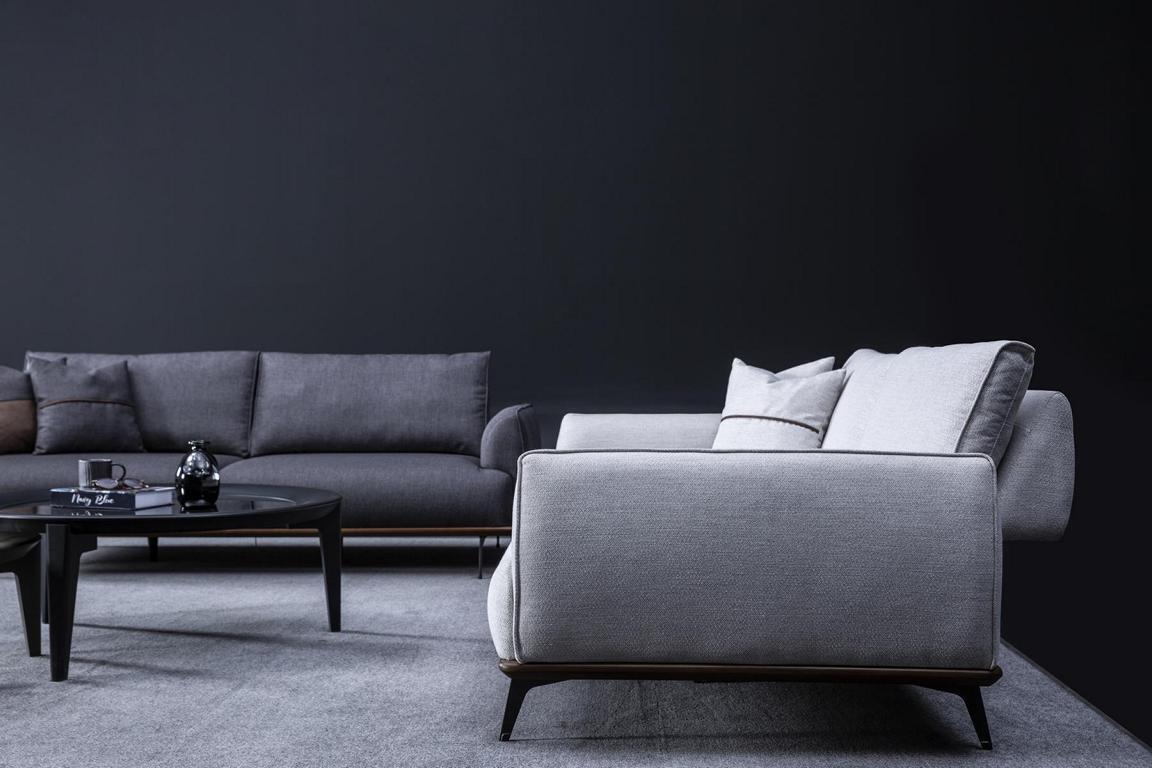 Modern Sofa Set, Three-Seater, Armchair, Textile Upholstery, Furniture Design