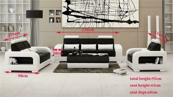 Entdecken Sie unsere modern gestaltete Sofagarnitur Polster 3+1+1 Sitzer Set aus hochwertigem Lederfaserstoff (70% Leder / 30% Polyester). Mit Maßen von ca. 236 x 98 x 95 cm für den 3-Sitzer und ca. 116 x 98 x 95 cm für die 1-Sitzer bietet dieses Set stilvollen Komfort für Ihr Wohnzimmer. Die Sitzhöhe beträgt ca. 43 cm und die Sitztiefe ca. 60 cm. Wählen Sie aus einer Vielzahl von Farben, darunter Ocker, Safrangelb, Kobaltblau, Silber und vielen mehr. Auf Anfrage sind auch Farbanpassungen möglich. Entscheiden Sie sich optional im Shop für verschiedene Materialgruppen, darunter Premium Echtleder und Premium Textilstoffe gegen Aufpreis. Das Innengestell aus echtem Holz und der Federkern sorgen für Stabilität und Bequemlichkeit. Gönnen Sie sich stilvolles Design und entspannten Genuss mit unserer modernen Sofagarnitur!